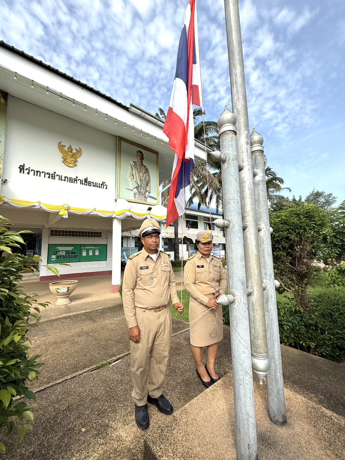 วันที่ 1 สิงหาคม 2568 เวลา 08.00 น. พ.จ.อ.อนุสิทธิ์ บัวหุ่ง นายอำเภอคำเขื่อนแก้ว นำกำนัน ผู้ใหญ่บ้าน แพทย์ประจำตำบล และผู้ช่วยผู้ใหญ่บ้านฝ่ายปกครอง ร่วมกิจกรรมเข้าแถวเคารพธงชาติ สวดมนต์ไหว้พระ และกล่าวอุดมการณ์รักชาติ ณ บริเวณเสาธง หน้าที่ว่าการอำเภอคำเขื่อนแก้ว จังหวัดยโสธร
