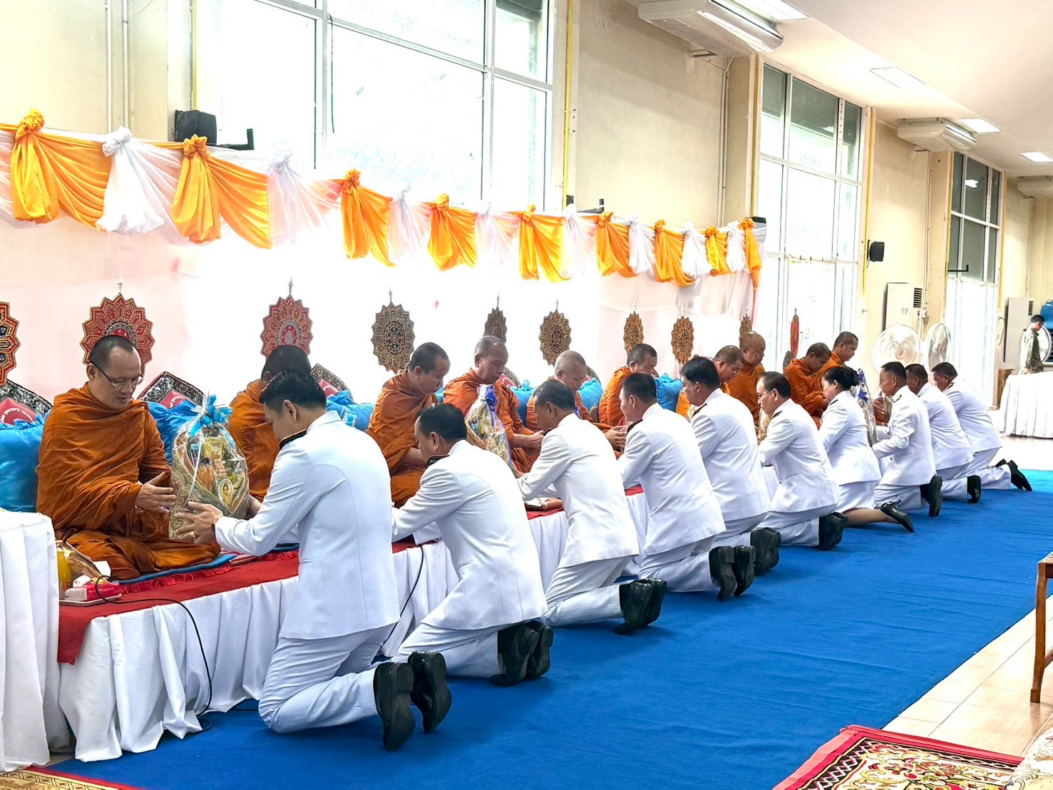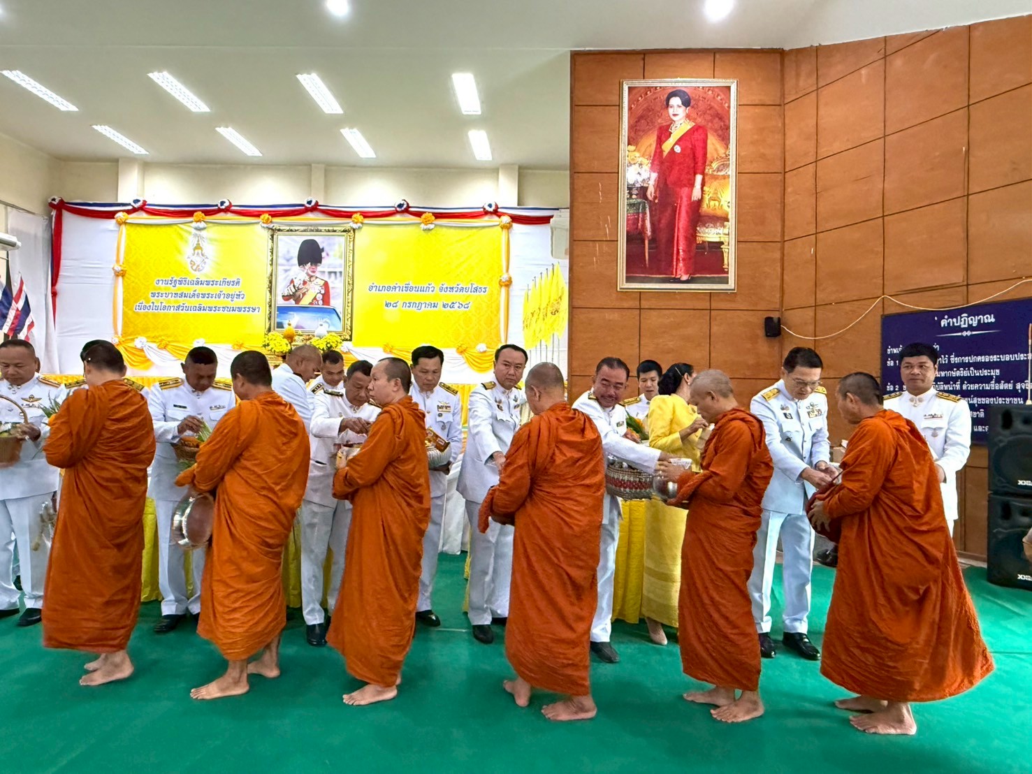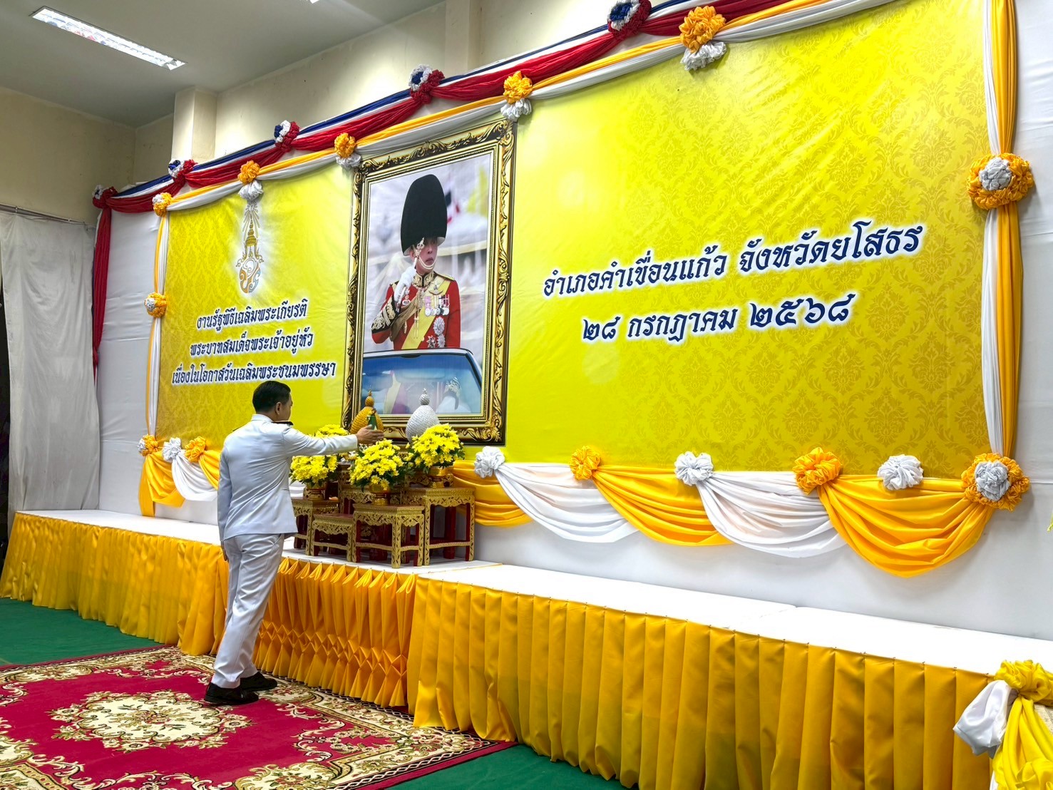 วันที่ 28 กรกฎาคม 2568 เวลา 07.30 น. พระครูเมธีธรรมบัณฑิต เจ้าคณะอำเภอคำเขื่อนแก้ว เป็นประธานฝ่ายสงฆ์ พ.จ.อ.อนุสิทธิ์ บัวหุ่ง นายอำเภอคำเขื่อนแก้ว เป็นประธานฝ่ายฆราวาส ในพิธีเจริญพระพุทธมนต์และทำบุญตักบาตร ในกิจกรรมเฉลิมพระเกียรติพระบาทสมเด็จพระเจ้าอยู่หัว เนื่องในโอกาสวันเฉลิมพระชนมพรรษา 28 กรกฎาคม 2568 โดยมีนายบุญแก้ว สมวงศ์ สมาชิกสภาผู้แทนราษฎรจังหวัดยโสธร เขต 2 นางจุฑารัตน์ บัวหุ่ง นายกกิ่งกาชาดอำเภอคำเขื่อนแก้ว ปลัดอำเภอ สมาชิกสภาองค์การบริหารส่วนจังหวัดยโสธร อำเภอคำเขื่อนแก้ว เขต 2 หัวหน้าส่วนราชการ หัวหน้าหน่วยงานรัฐวิสาหกิจ ผู้บริหารองค์กรปกครองส่วนท้องถิ่น ผู้บริหารสถานศึกษา ข้าราชการ กำนัน ผู้ใหญ่บ้านฯลฯ จิตอาสาพระราชทาน และประชาชนชาวอำเภอคำเขื่อนแก้วเข้าร่วมกิจกรรม ณ หอประชุม 100 ปี อำเภอคำเขื่อนแก้ว จังหวัดยโสธร